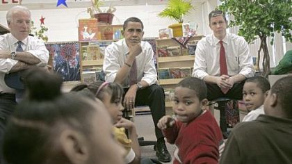 President-elect Barack Obama President-elect Barack Obama, center, flanked by Education Secretary-designate Arne Duncan, right, and Vice President-elect Joe Biden, visit students at the Dodge Renaissance Academy in Chicago last week, Students in the Pittsburgh area have written to the president-elect in anticipation of his inauguration.